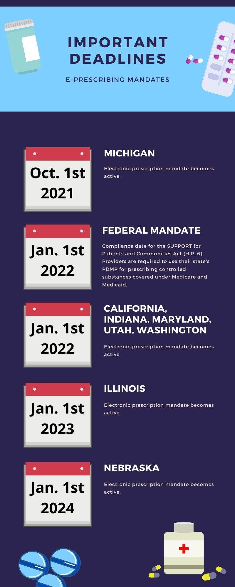 In addition to the federal mandate, several states have e-prescribing mandates coming up.